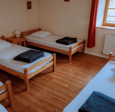 Pour l'hébergement, nous vous proposons 8 chambres familiales situées juste au-dessus de la salle de réception, offrant un total de 34 couchages. Ainsi, vos proches pourront profiter d'un confort optimal sans avoir à se soucier du transport après la fête, et passer un week-end agréable au cœur de cet événement mémorable.