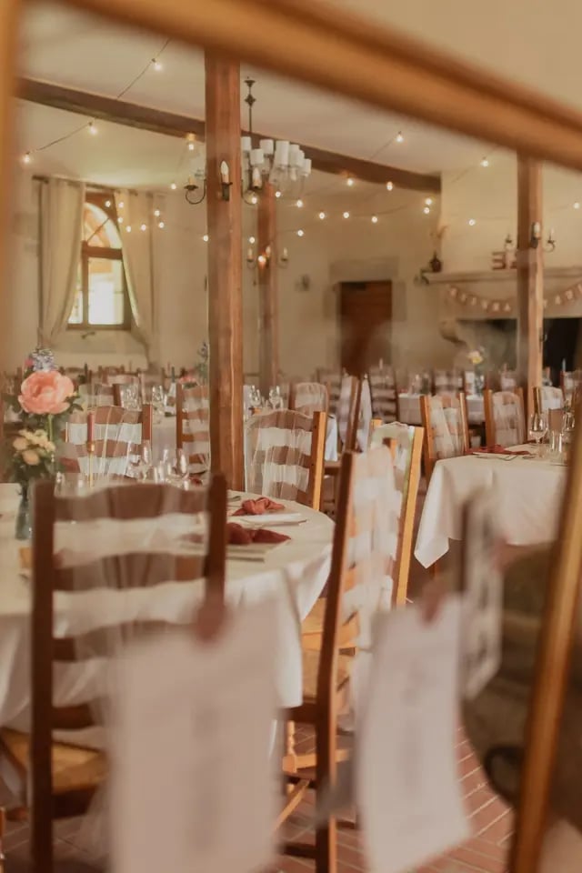 Nichée dans d'anciennes écuries du XIXème siècle, cette salle de réception allie charme d'antan et élégance. Son architecture authentique, avec ses poutres apparentes et ses murs en pierre, crée une atmosphère chaleureuse et raffinée. Conçue pour accueillir jusqu'à 120 convives assis, elle dispose d'un vaste espace modulable avec une piste de dance dédiée, parfaite pour une soirée inoubliable. Idéale pour un mariage d'exception, elle offre un cadre romantique où chaque détail contribue à sublimer votre événement. Que ce soit pour un dîner élégant ou une fête animée, cette salle promet des moments magiques et mémorables.